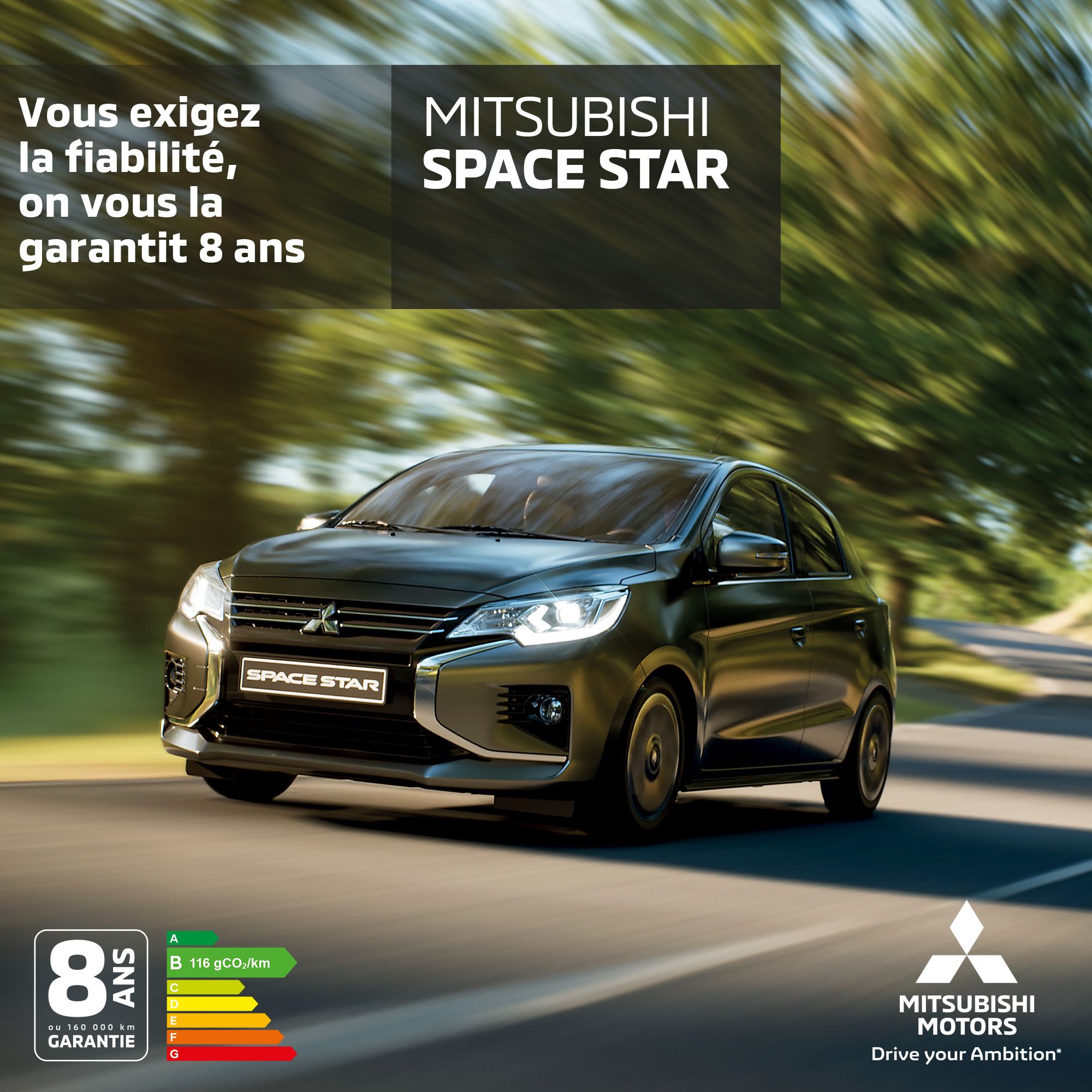 Économique, généreuse et fiable, la Mitsubishi SPACE STAR combine de nombreux équipements de sécurité et de connectivité. Sa souplesse et son confort d'utilisation font d'elle la citadine idéale.